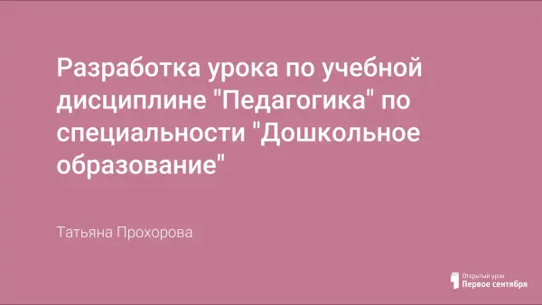 Разработка урока по учебной дисциплине "Педагогика" по специальности "Дошкольное образование"