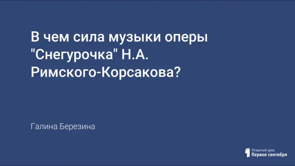 Цель урока – через изменение образа Снегурочки прийти к народной мудрости, что животворящее начало на земле – это любовь, самая главная духовная и нравственная ценность!