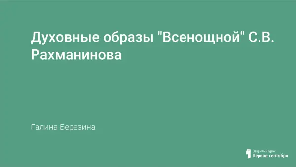 Цель урока – через духовные музыкальные и поэтические образы «Всенощной» С.В. Рахманинова, «Молитвы» Б.Окуджавы и К.Романова подвести к мысли духовного совершенствования учащихся. Развиваются навыки восприятия духовной музыки, нравственного мышления, слушание внутреннего музыкального голоса. Развиваются вокальные данные через песенный материал урока.