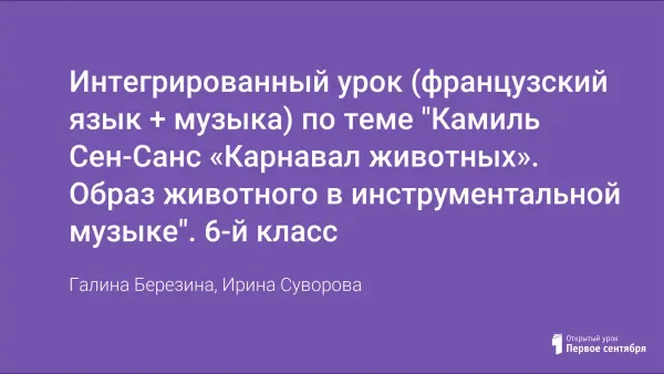 Интегрированный урок (французский язык + музыка) по теме "Камиль Сен-Санс «Карнавал животных». Образ животного в инструментальной музыке". 6-й класс
