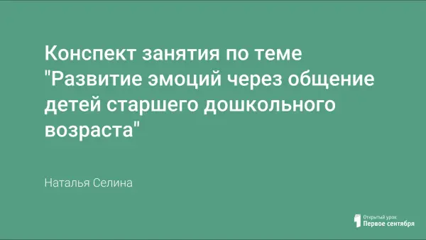 Конспект занятия по теме "Развитие эмоций через общение детей старшего дошкольного возраста"
