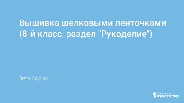 Привитие интереса к декоративно-прикладному искусству является основной задачей автора. Привлечение девочек к художественной обработке материалов повышает у них интерес к изучению технологии, способствует развитию творческого начала, чувства прекрасного. В 8-м классе автор знакомит учащихся с вышивкой ленточками. Цветы, выполненные в этой технике, выглядят рельефнее, исполняются гораздо быстрее.