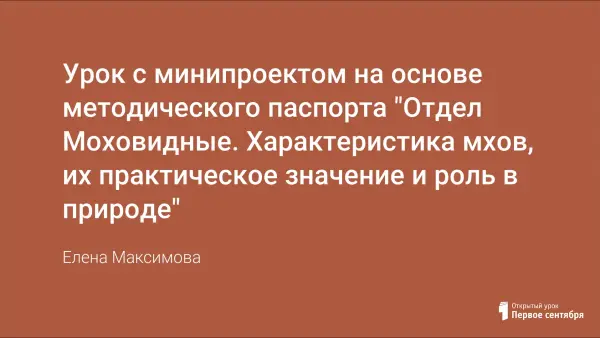 Урок с минипроектом на основе методического паспорта "Отдел Моховидные. Характеристика мхов, их практическое значение и роль в природе"