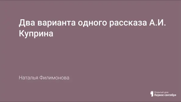 В статье проанализированы рассказы Куприна "Наташка" и "По-семейному"; это два варианта одного рассказа, написанные с интервалом более чем в 20 лет. Интересно наблюдать, как развивается мысль писателя. Работу над этими рассказами можно считать подготовительным этапом к написанию повести "Яма", раскрывающей серьёзные проблемы времени, в котором жил Куприн.