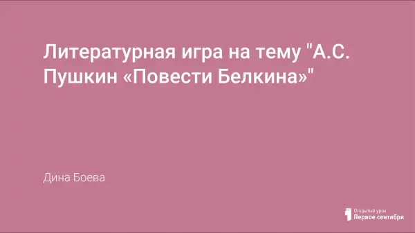 Данный материал в игровой форме позволяет познакомить учащихся с циклом произведений А.С. Пушкина «Повести Белкина». Урок проводится в виде соревнования двух команд. Включены и задания, проверяющие знание текста, и задания творческого характера.