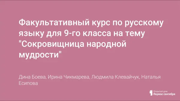 Факультативный курс по русскому языку для 9-го класса на тему "Сокровищница народной мудрости"