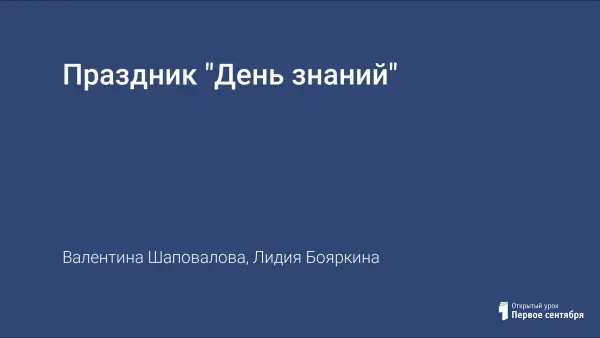 "День знаний" – праздник, который устраивается для детей, и участвуют в этом все педагоги дошкольного учреждения. Вся деятельность детей на этом празднике носит импровизационный характер. Праздничное действо предполагает задания на творчество, основной их принцип – активность каждого ребенка. Главное, чтобы праздник принес детям радость от неожиданных, ярких впечатлений.