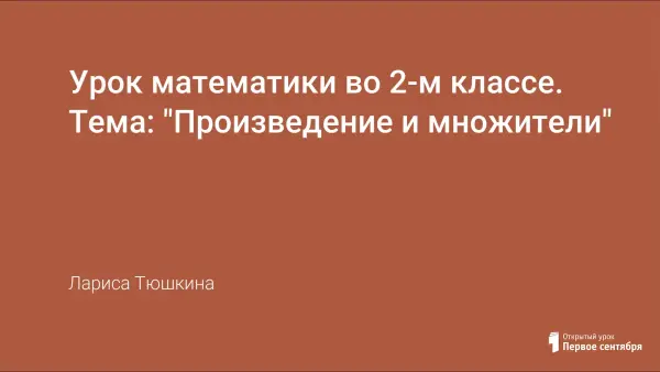 Урок по УМК «Перспективная начальная школа». На данном уроке была продолжена работа с понятием «произведение», расширена терминологическая база обу-чающихся с помощью введения терминов «первый множитель», «второй множитель». На уроке созданы условия для возникновения проблемной ситуации. Подача материала с использова-нием презентации даёт возможность легко запомнить термины, активизировать познавательную деятельность.