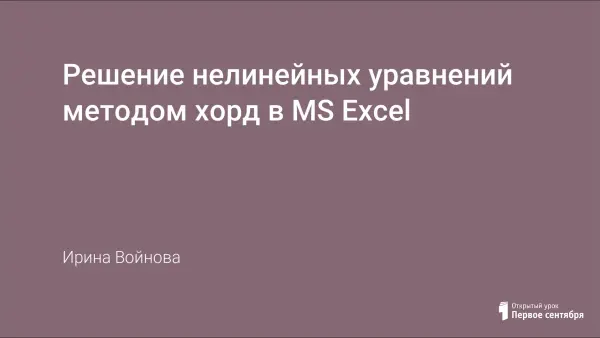 На уроке рассматриваются основные понятия математики: функция, способы решения уравнений, а также практическая реализация метода с помощью MS Exel с выходом на программирование (в конкретном случае в TP Pascal).
