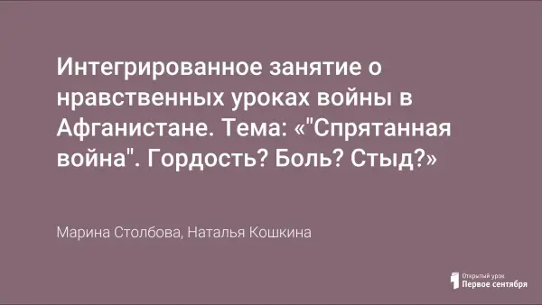 Интегрированное занятие о нравственных уроках войны в Афганистане. Тема: «"Спрятанная война". Гордость? Боль? Стыд?»