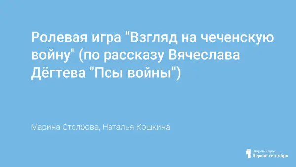Ролевая игра "Взгляд на чеченскую войну" (по рассказу Вячеслава Дёгтева "Псы войны")