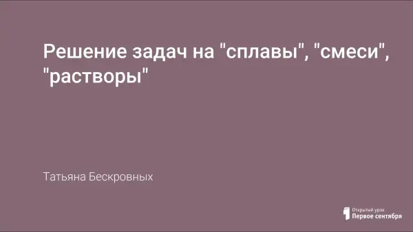 Задачи, связанные с понятием "концентрация" и "процентное содержание", являются традиционно трудными для обучающихся. При решении таких задач удобно пользоваться таблицей, которая помогает понять задачу и по которой легче составить уравнение или систему.