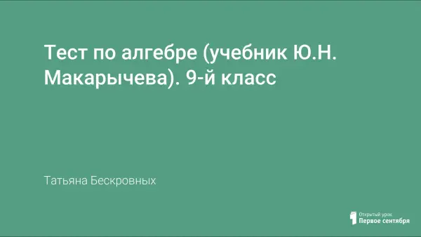 Тест представлен в 10 вариантах, включает в себя задания по темам: «Квадратный трёхчлен», «Квадратичная функция», «Биквадратные уравнения», «Системы квадратных уравнений». Ко всем вариантам теста даны ответы в виде таблицы, кроме этого предлагается примерный бланк ответов. Материал будет полезен учителям, предпочитающим многовариантные контрольные работы, наличие ответов сэкономит время учителя при проверке.