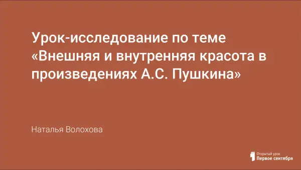 К уроку учащиеся должны выполнить несколько практических исследовательских заданий. Свои результаты они представляют наглядно: в виде проекта или презентации. Обсуждая результаты своей работы, учащиеся должны доказать, что внешняя и внутренняя красота в произведениях А.С. Пушкина несоизмеримы: внешне красивый человек не всегда красив внутренне. Полученные выводы учащиеся должны попытаться найти в ситуациях в ходе моделирующего упражнения.