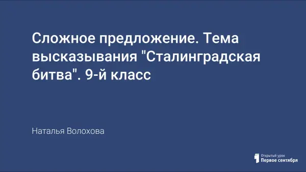 Цель урока: систематизировать знания учащихся по теме «Сложное предложение», совершенствовать синтаксические навыки, анализировать сложные предложения разных типов, совершенствовать орфографические навыки. Предлагаются разные виды работ, которые помогут подготовиться к ЕГЭ. Предполагается разноуровневое домашнее задание. Все предложения, используемые на уроке, связаны одной темой «Сталинградская битва».