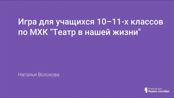 Театральное искусство обладает уникальными особенностями включать в себя все виды искусства: и литературу, и музыку, и живопись, и архитектуру, и искусство танца.. Именно поэтому театральная деятельность в школе имеет огромное значение. Образовательная среда сегодня нуждается во взаимодействии с социальной средой, это способствует формированию целостного мировоззрения подрастающего поколения. Цель урока: систематизировать знания учащихся по теме «Театр». Нестандартная форма проведения урока всегда хорошо воспринимается обучающимися.