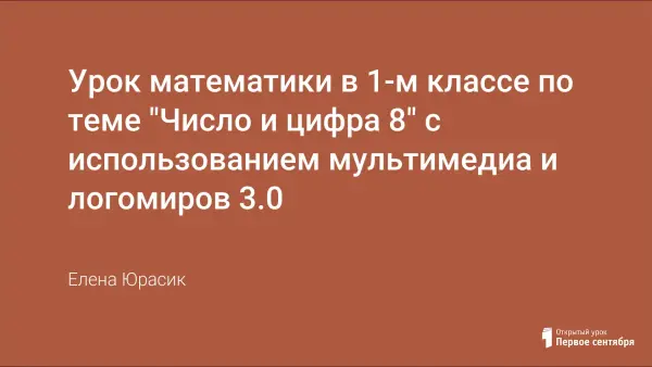 Урок предназначен для формирования у учащихся представления о составе числа 8, с опорой на графическую модель числа и на числовой отрезок. Использование на уроке мультимедиа позволяет учащимся наглядно узнать о составе числа 8. Логомиры позволяют закрепить состав числа в игровой форме.