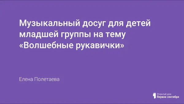 Музыкальный досуг «Волшебные рукавички» для дошкольников предназначен для детей младшего дошкольного возраста. Ребята встречаются с грустным Снеговиком. Приходят ему на помощь и пытаются его развеселить. А также, дети знакомятся с русской народной сказкой «Рукавичка». Получают первый опыт в театрализованном представлении.
