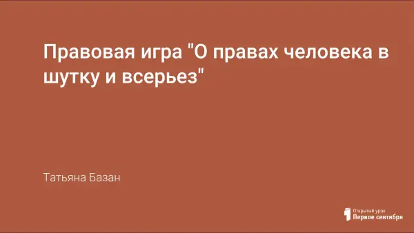 Еще в древние времена у людей возникла необходимость отстаивать свои права. Право древний человек отвоевывал силой, слабый не имел никаких прав. Не так-то быстро люди поняли, что сильным заступником может быть государство. Какие же могут быть права у человека? Как может быть защищен человек? Об этом и пойдет речь на нашей игре. Игра сопровождается презентацией.