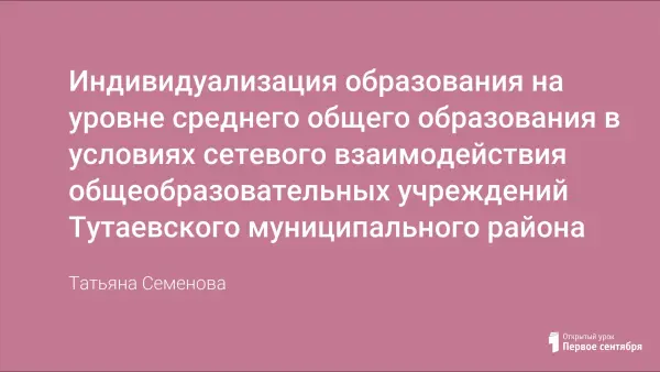 В статье представлен опыт Тутаевского муниципального района (далее – ТМР) Ярославской области по организации работы обучающихся над индивидуальным проектом в рамках реализации ФГОС среднего общего образования (далее – ФГОС СОО).