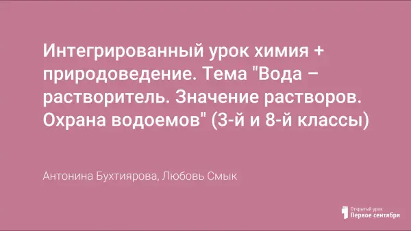 Интегрированный урок химия + природоведение. Тема "Вода – растворитель. Значение растворов. Охрана водоемов" (3-й и 8-й классы)