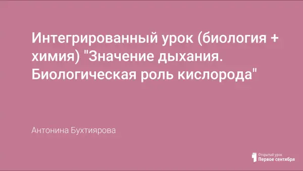 Интегрированный урок (биология + химия) "Значение дыхания. Биологическая роль кислорода"