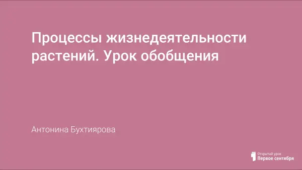 В ходе урока проверяется усвоение основных понятий темы, закрепляются знания об основных процессах жизнедеятельности растений. Предлагаются задания разного уровня сложности. К уроку разработана презентация.