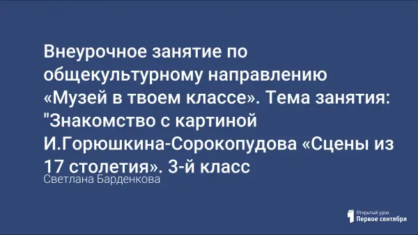 Цель занятия: научить школьника находить и видеть на картине то, что изображено и реконструировать то, что вышло за рамки изображения, но каким-либо образом его характеризует.