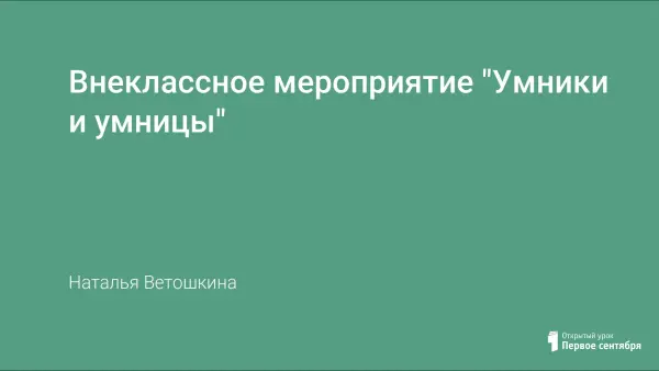 Основой внеклассного мероприятия – игры «Умники и умницы» является известная игра с таким же названием, дополненная вопросами по информатике для учащихся 5–7-x классов.