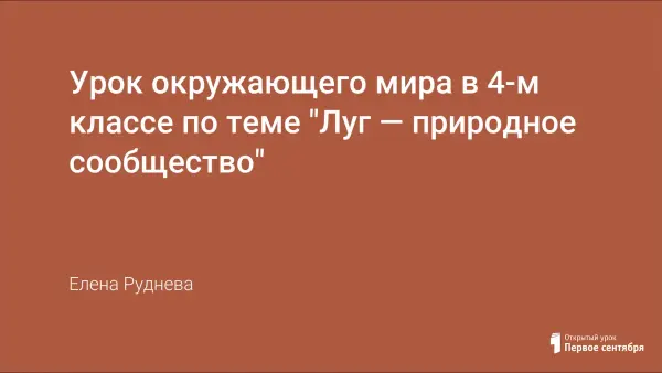Изучение природных сообществ в курсе начальной школы – сложная учебная тема. Предлагаемая разработка урока позволит познакомить учащихся с типичными представителями природного сообщества луга, их приспособленностью к среде обитания и установить взаимосвязи между организмами, входящими в состав природного сообщества.