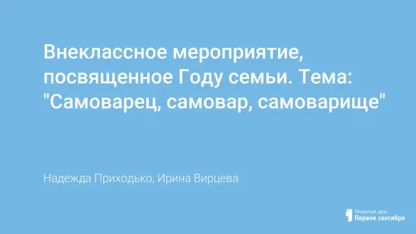 Внеклассное мероприятие, посвященное Году семьи. Тема: "Самоварец, самовар, самоварище"