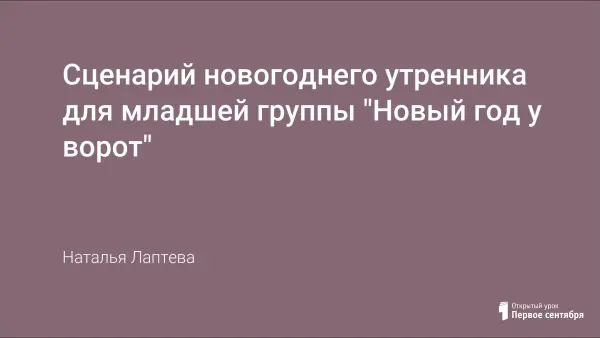 Новогодний утренник – радостное событие для детей, которое должно приносить каждому ребенку удовольствие. На конкурс представлен сценарий для младшего дошкольного возраста "Новый год у ворот". В сценарии используются все виды детской музыкальной деятельности.