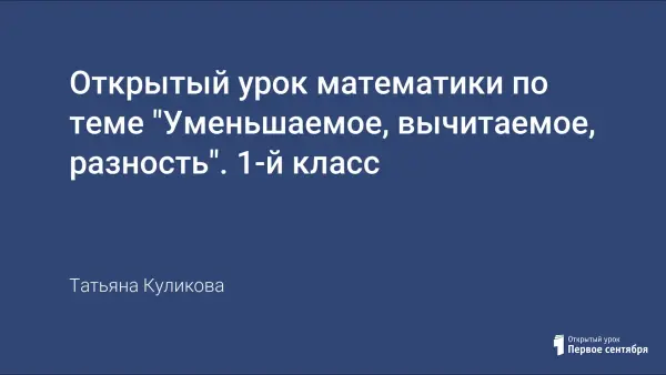 Цель урока: учить применять теоретические знания при выполнении практических заданий; познакомить учащихся с названием компонентов и результатом действия вычитания, с разностью как выражением.