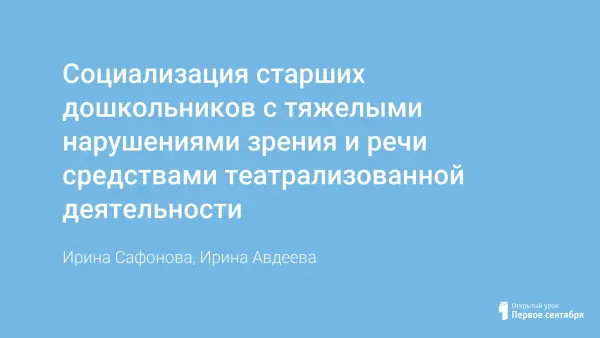 Социализация старших дошкольников с тяжелыми нарушениями зрения и речи средствами театрализованной деятельности