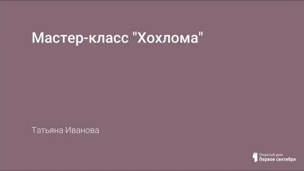 Цель мастер-класса: познакомить с особенностями народного промысла Хохлома, с его историей и современным развитием.