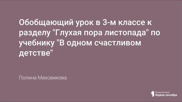 Урок-обобщащение по разделу "Глухая пока листопада", подготавливает учащихся к сочинению на заданную тему. На уроке используются рисунки и стихи собственного сочинения детей. Проводится подробный анализ произведений искусства (живопись, музыка, литература, поэзия).