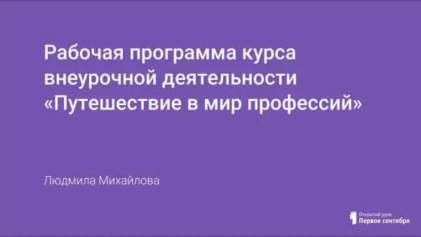 Цель программы: ознакомление с миром профессий, их социальной значимостью и содержанием; развитие познавательных способностей учащихся на основе создания максимально разнообразных впечатлений о мире профессий.