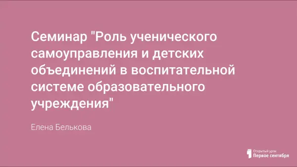 Программа семинара имеет значение для решения ряда воспитательных и социальных проблем в школе. Показ содержания деятельности ученического самоуправления и детских общественных организаций, определение их места в воспитательной системе образовательного учреждения проходит в масштабе всей школы.