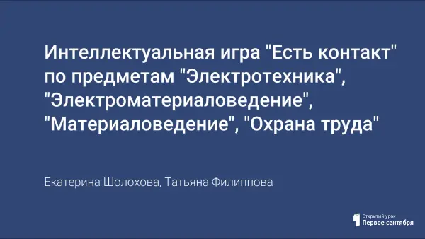 Интеллектуальная игра "Есть контакт" по предметам "Электротехника", "Электроматериаловедение", "Материаловедение", "Охрана труда"