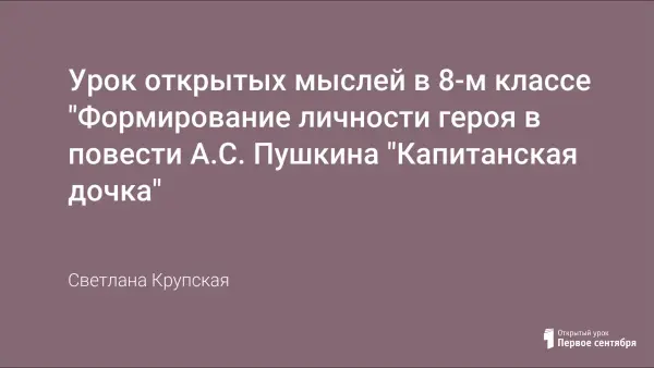 Это урок открытых мыслей по повести А.С. Пушкина "Капитанская дочка". На уроке дети учатся вчитываться в художественный текст и открыто высказывать мысли, возникающие в ходе чтения (акцентное вычитывание).