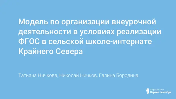 Данная Модель направлена на организацию внеурочной деятельности в условиях реализации ФГОСНОО, раскрыт процесс вхождения обучающихся в инновационную активную деятельность, способствующую оптимизации процесса воспитания и социализации младших школьников в условиях сельского социума Крайнего Севера. Предложенные материалы адресованы заместителям директора, учителям, воспитателям, работающим в начальной школе, и другим заинтересованным лицам.