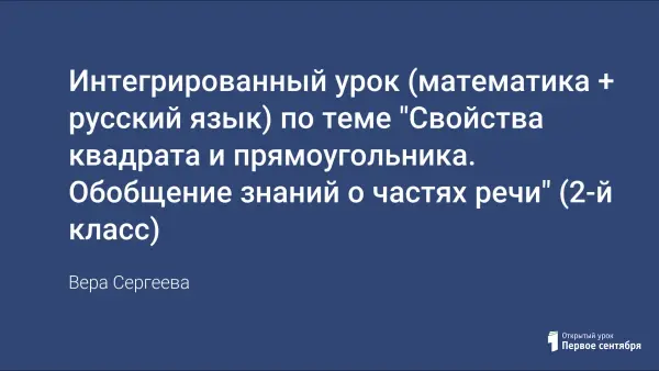 Данная работа представляет собой интегрированный урок по математике и русскому языку во 2-м классе. Адресован учителям начальных классов. Рекомендован с целью обобщения знаний о геометрических фигурах по математике и о частях речи по русскому языку. Включает в себя разнообразные формы работы.