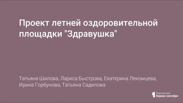 Проект летней оздоровительной площадки "Здравушка"