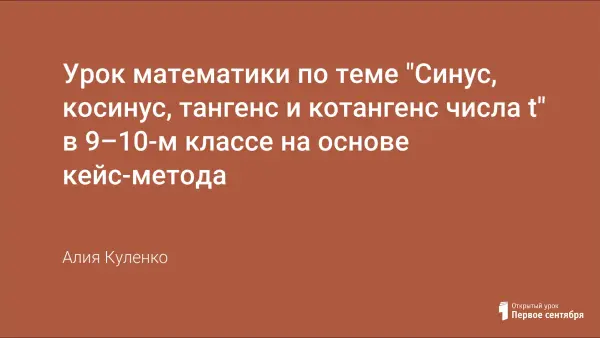 Урок разработан согласно тематическому планированию главы «Тригонометрические функции» по учебнику А.Г. Мордковича «Алгебра и начала анализа. 10–11 классы». Для проведения данного урока составлен обучающий кейс, источником которого выступает образование. Для реализации кейс-метода будет лучше, если два урока математики стоят в расписании рядом.