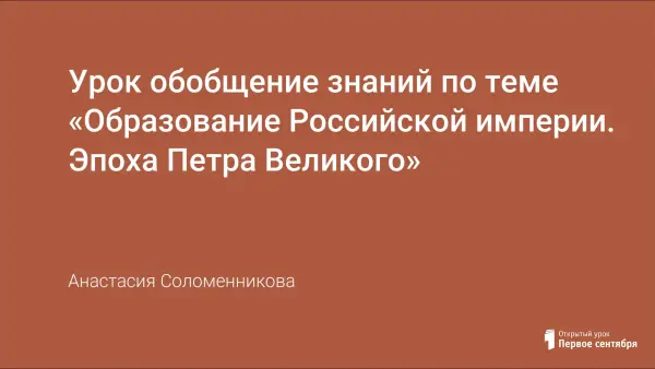 Урок является последним при изучении темы "Образование Российской империи. Эпоха Петра Великого" и необходим для обобщения. При составлении урока использованы такие формы работы, при помощи которых отрабатываются следующие компетенции учеников: 1. Учебная: извлекать выгоду из образовательного опыта. 2. Исследовательская: получение и обработка информации. 3. Социально-личностная: вступать в дискуссию и вырабатывать свое собственное мнение. 4. Коммуникативная: выслушивать и принимать во внимание взгляды других людей, дискутировать и защищать свою точку зрения.