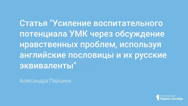 Данный материал представляет собой методические рекомендации по использованию пословиц на уроках английского языка с целью усовершенствования содержания традиционных учебников. Здесь представлена классификация пословиц по их грамматическим и лексическим признакам, предлагаются задания для всех видов речевой деятельности.