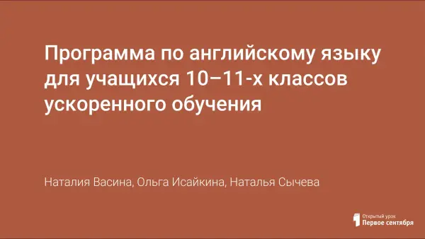 Программа по английскому языку для учащихся 10–11-х классов ускоренного обучения