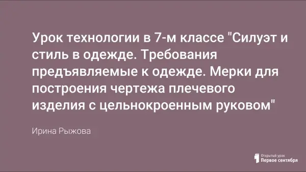 Урок дает представление о силуэте и стиле в одежде, объясняет правила снятия мерок для построения чертежа.