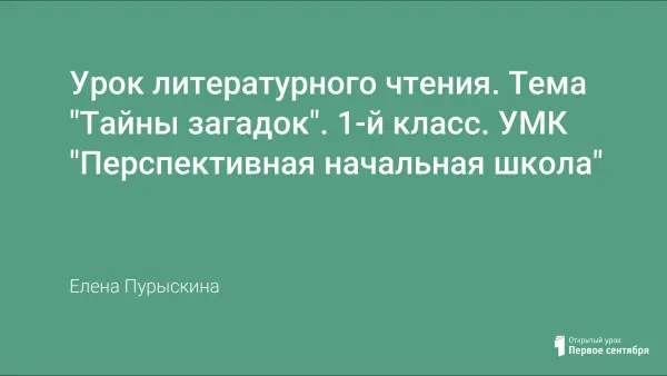 Урок литературного чтения. Тема "Тайны загадок". 1-й класс. УМК "Перспективная начальная школа"