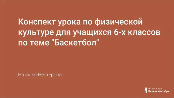 Урок направлен на закрепление ведения мяча с различной высотой отскока. Игровой и соревновательный методы способствуют быстрому закреплению всех полученных навыков. Предлагается комплекс упражнений для детей с различной физической подготовкой. Структура данного урока позволяет максимально повысить его плотность.